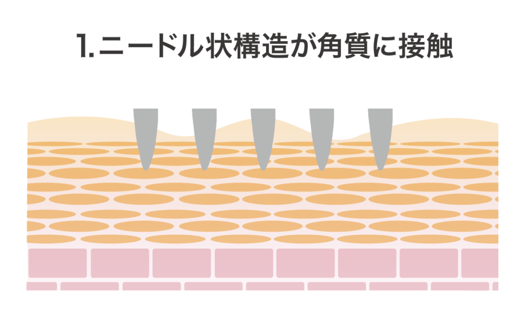 ・微細なニードル構造により美容液を角質層内に浸透させる