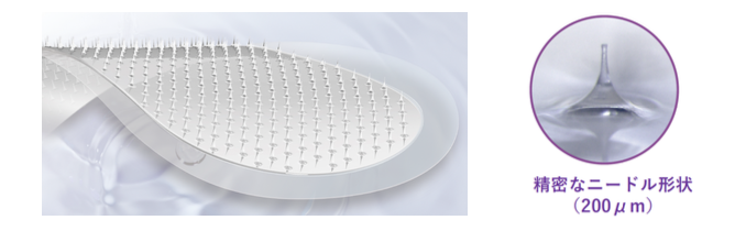 ・ニードル状に成形したヒアルロン酸※2などの美容成分を肌に貼って使用する