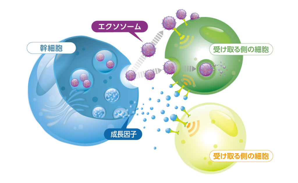 成長因子やエクソソームは、幹細胞を含む細胞が分泌し、培養の過程で培養液中に含まれ得る成分として語られます。
